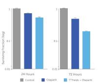 - TTFields used with a PARP inhibitor that inhibits DNA damage repair (olaparib) have demonstrated a synergistically enhanced cytotoxic effect in preclinical cell lines (ie, the decrease in clonogenic survival of H157 and H1299 cells)14,16