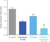 TTFields used with a chemotherapeutic microtubule stabilizing agent (paclitaxel) has demonstrated enhanced effects, including synergy, in multiple preclinical tumor models.1,12,13