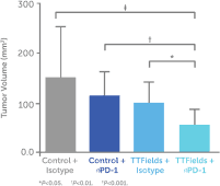- TTFields used with PD-1 inhibition have demonstrated decreased tumor size, increased immune cell infiltration, and increased cytokine production (eg, IFN-γ) versus monotherapy alone as assessed in tumor models20