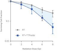 TTFields used with RT, a therapy that induces DNA damage, have demonstrated enhanced effects in preclinical models, particularly when TTFields preceded RT.1,12,14-19