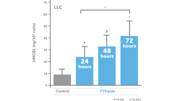 TTFields have induced hallmarks of immunogenic cell death, including HMGB1 release, cell surface exposure of calreticulin, and autophagy-mediated ATP release.1
